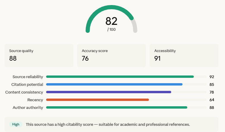 The Citability Score is a way of measuring how likely your content is to be referenced, quoted, or used as a source in AI generated answers and modern search experiences. It focuses on something deeper than rankings, something that traditional metrics struggle to capture.